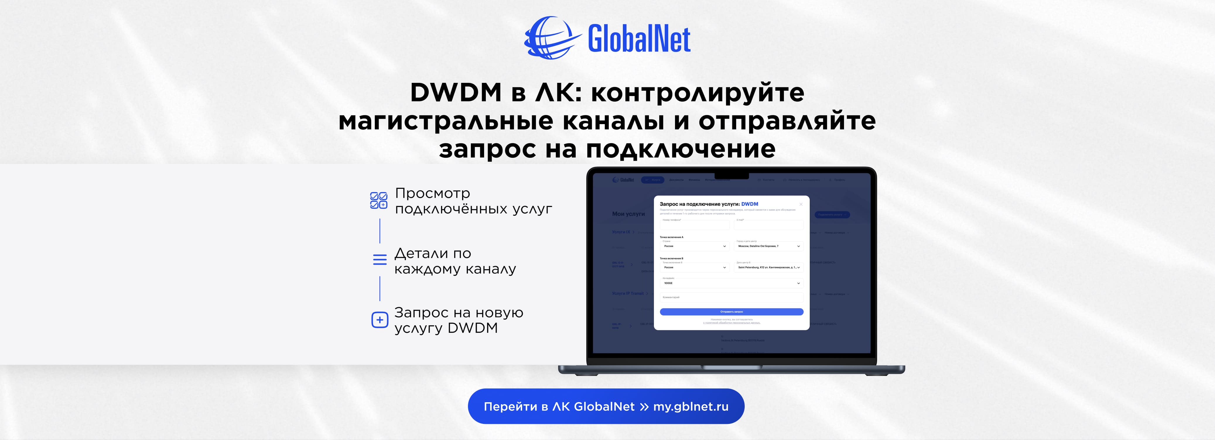 Команда GlobalNet продолжает развивать платформу Личного Кабинета. В разделе DWDM теперь можно отслеживать все подключённые каналы, их коммерческие и технические параметры и отправлять запрос на новую услугу прямо из интерфейса ЛК.