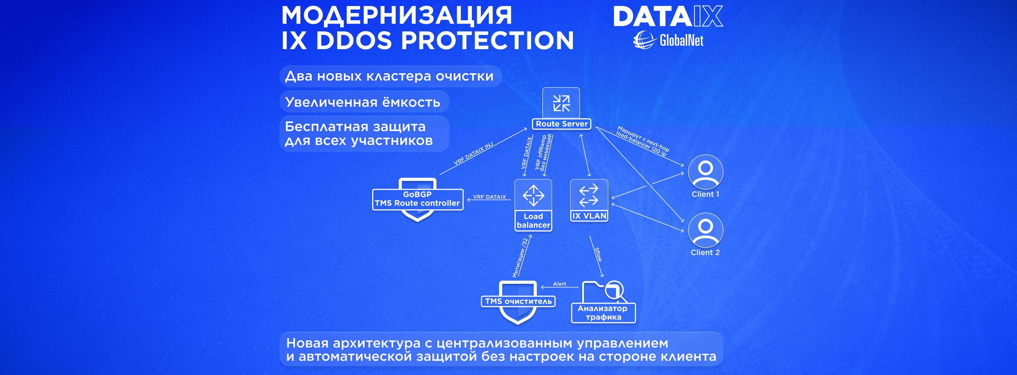 Наша команда завершила масштабное обновление системы защиты от DDoS-атак для участников пиринговой сети DATAIX. Новая архитектура основана на централизованном управлении и делает защиту полностью прозрачной для участников.